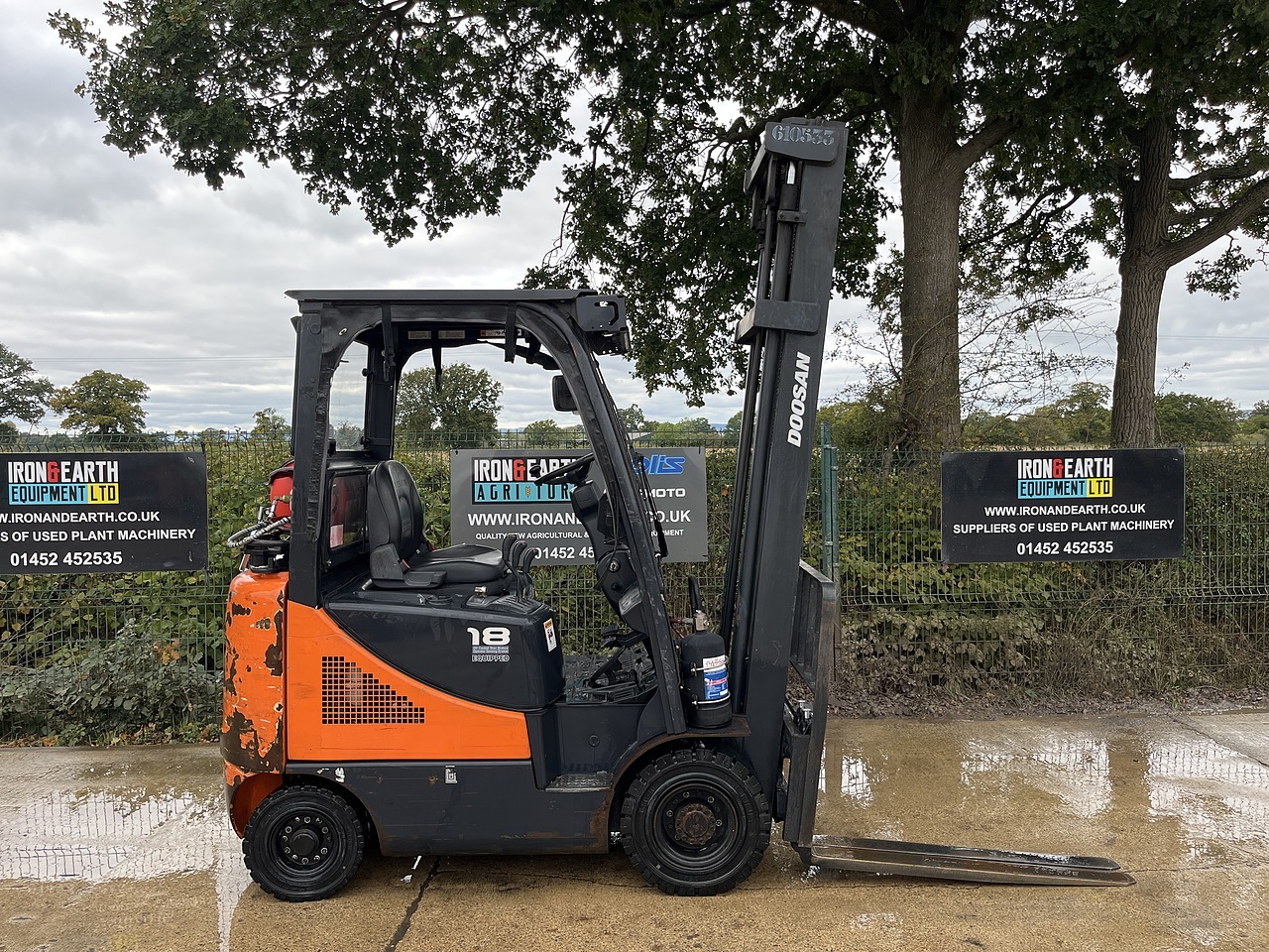 Doosan G18S-5 With 13565 Hours. LPG, Lifts 1.75 Tonne, Max Height 4.5m, Duplex Mast, Side Shift. Supplied With Pallet Forks.
