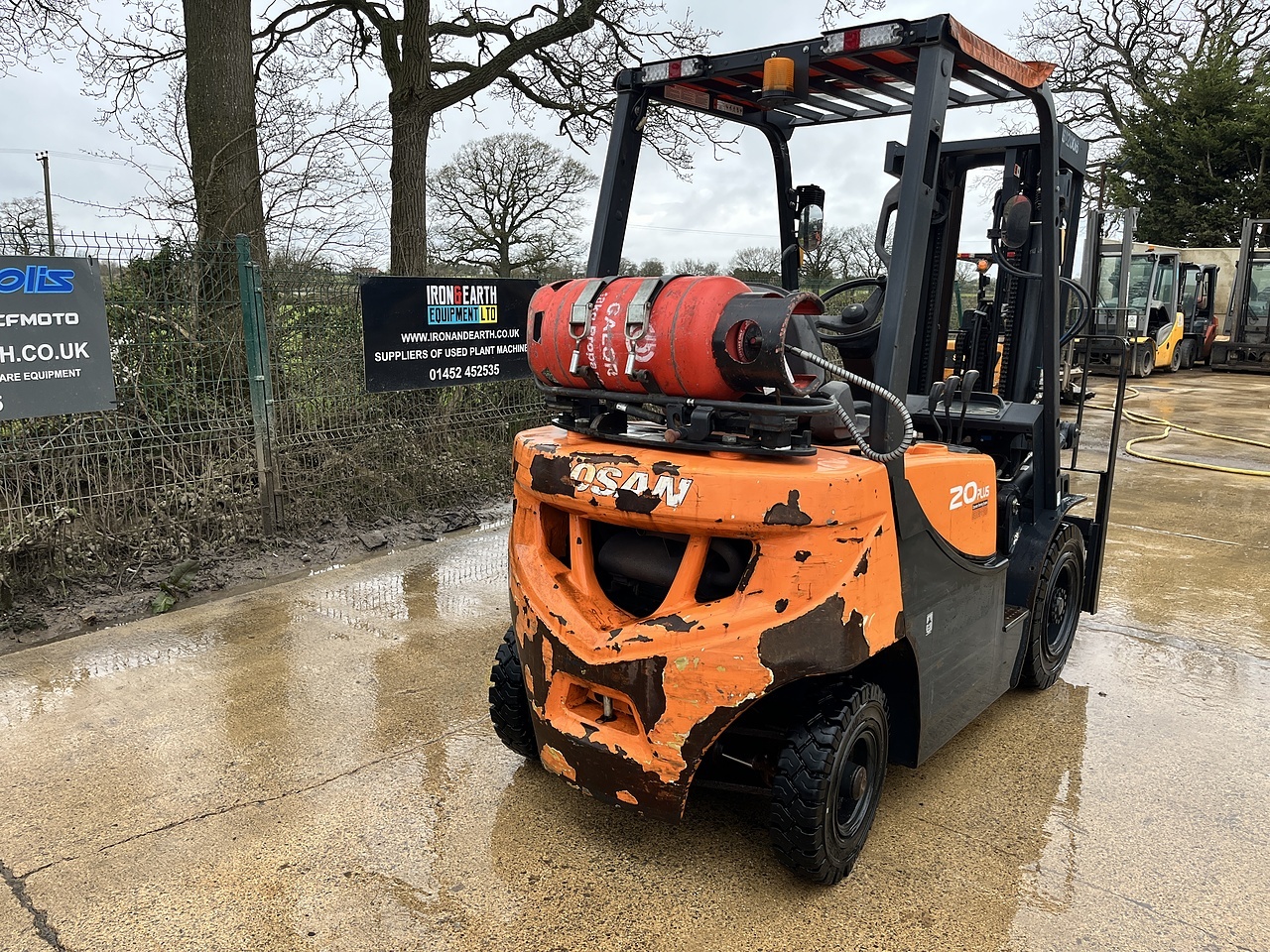 Doosan G20GP With 2868 Hours. Lifts 2 Tonne, Max Height 4.7m, Mitsubishi Engine, LPG, Triple Free Lift Mast, Container Spec, Side Shift, Working Lights. Supplied With Pallet Forks.