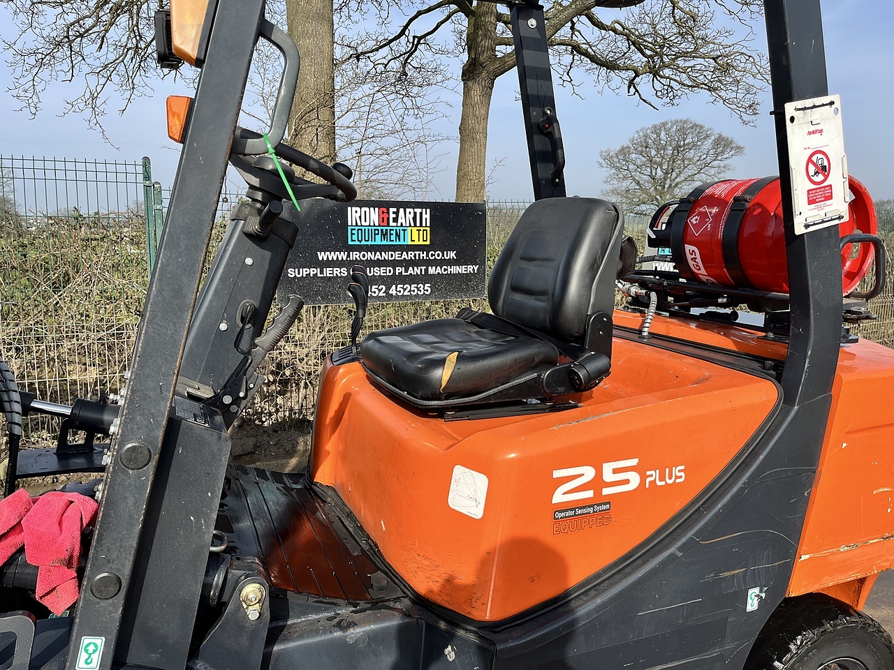 Doosan G25GP With 2196 Hours. Lifts 2.5 Tonne, Max Lift Height Of 4.7m, Mitsubishi Engine, LPG, Triple Free Lift Mast, Container Spec, Side Shift, Working Lights, Amber Site Beacon. Supplied With Pallet Forks.