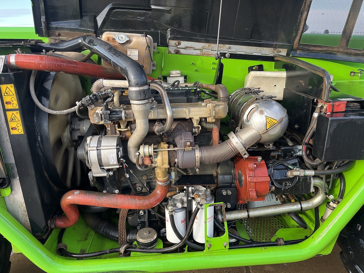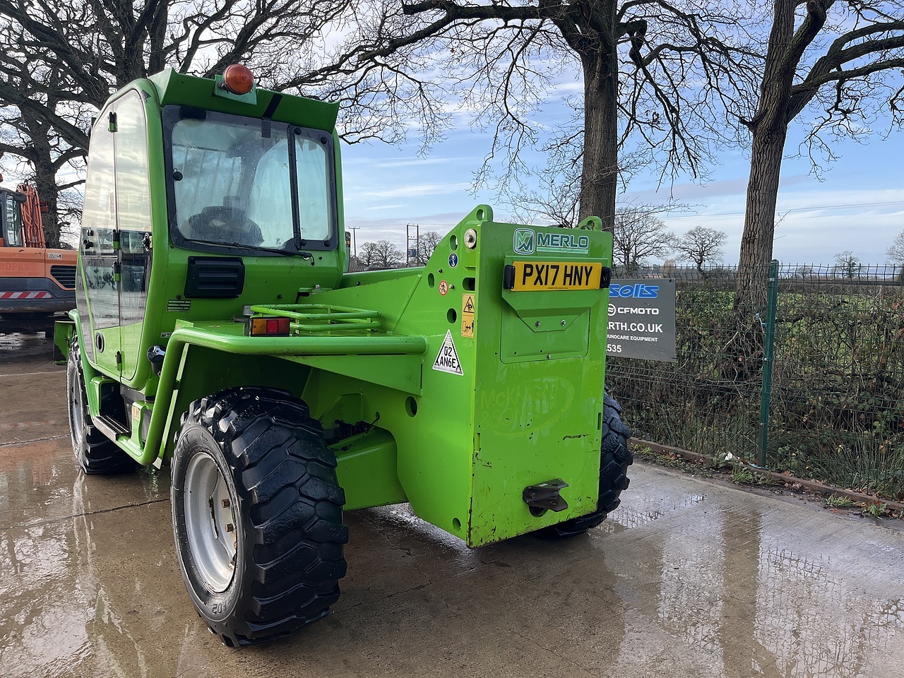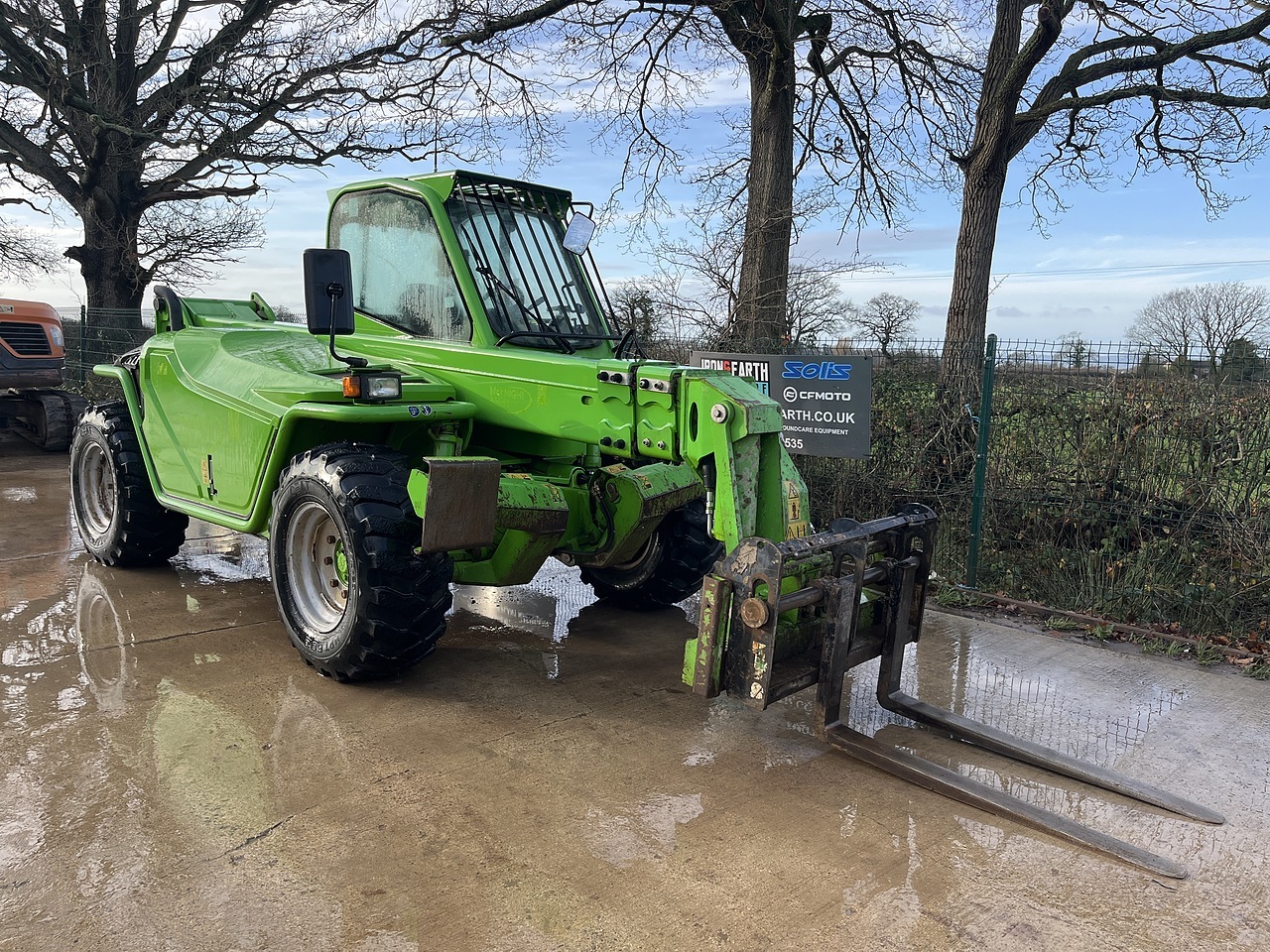 Merlo P38.13 Plus With 4953 Hours. Deutz Engine, Lifts 3.8 Tonnes, Max Height 13 Meters. Man Basket Controls, Sway, Amber Site Beacon, Heated Cab, Radio. Supplied With Pallet Forks.