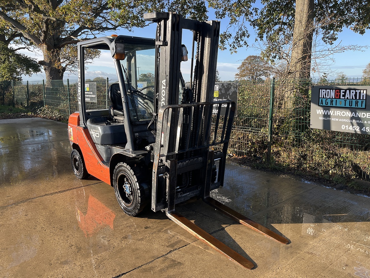 Toyota 02-8FDF30 With 6106 Hours. Lifts 3 Tonne, Max Height 4.7m, Turning Radius Of 2.43m, Triple Free Lift Mast, Side Shift, Amber Site Beacon. Supplied With Pallet Forks.